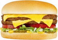 Two 100% pure beef patties, two slices of American cheese, shredded lettuce, ripe tomatoes, crinkle-cut pickles, chopped onions and choice of mayonnaise, mustard or ketchup.